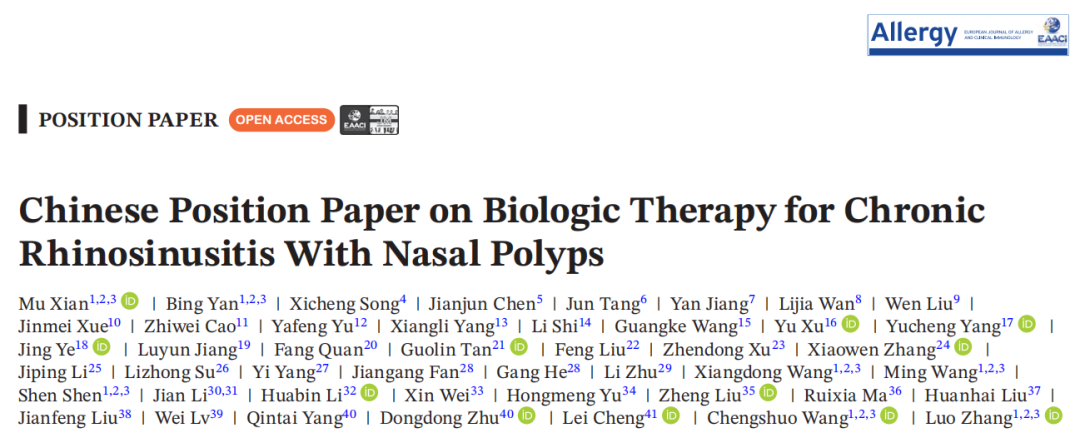 2025年5月,張羅教授團隊牽頭制定的《生物制劑治療慢性鼻竇炎伴鼻息肉中國意見書》發表于過敏領域全球排名第一學術期刊Allergy,明確司普奇拜單抗的臨床價值,向全球介紹慢性鼻竇炎伴鼻息肉治療的“中國方案”。意見書指出,經過適當藥物和/或手術治療后仍未控制的重度慢性鼻竇炎伴鼻息肉成人患者適合接受生物制劑治療。