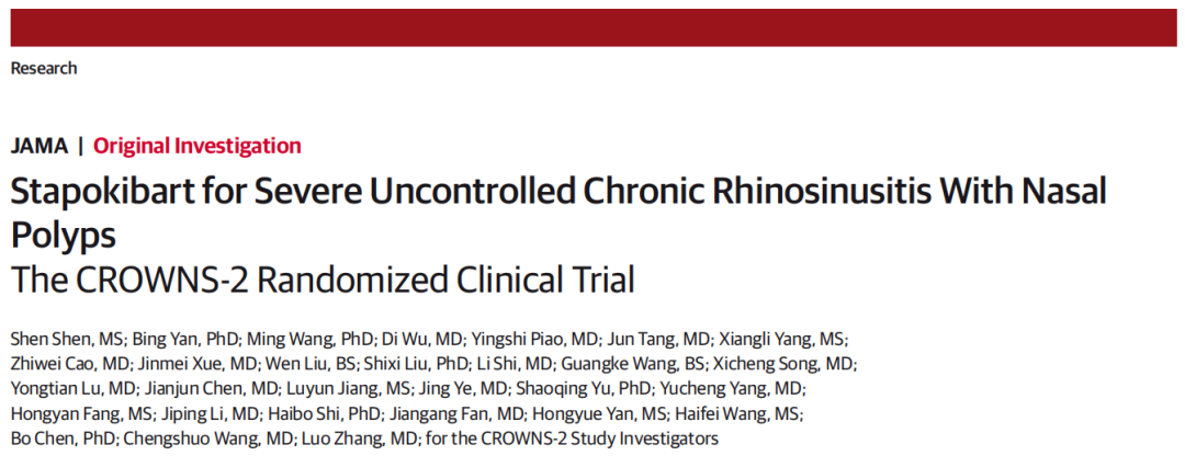 ■    CROWNS-2研究是我國首個生物制劑治療難治性慢性鼻竇炎伴鼻息肉Ⅲ期臨床研究,該研究結果發表,再次證實了司普奇拜單抗療效優異、安全性可控,是我國科學家在鼻科治療領域取得的又一引領世界的重大成果。該研究推動了司普奇拜單抗慢性鼻竇炎伴鼻息肉適應癥獲批及臨床應用,實現了該領域國產生物制劑“零的突破”,為患者提供了新的精準治療選擇,讓更多患者受益。