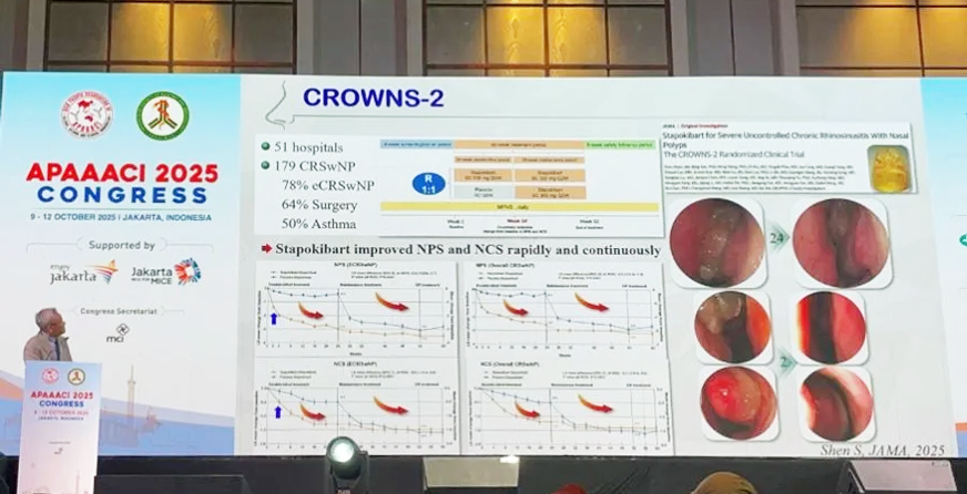 2025年10月9日至12日,由亞太過敏、哮喘與臨床免疫學會(APAAACI)與印度尼西亞過敏與免疫學會(ISAI)聯合舉辦的2025年APAAACI年會于印度尼西亞雅加達隆重召開,本次大會以“多元中的統一:推動過敏、哮喘與免疫學領域的科學與創新——從遺傳學到細胞治療”為主題,旨在融合最前沿的科學進展與臨床實踐經驗,面向臨床醫生與科研人員,推動學術與實踐的深度交流。上千位來自不同國家和地區的專家學者齊聚一堂,共同促進知識分享與跨領域合作,探討應對過敏與免疫性疾病挑戰和行業發展。司普奇拜單抗慢性鼻竇炎伴鼻息肉III期臨床研究數據亮相本次大會,在國際舞臺上展示中國的創新方案,獲得與會專家的廣泛關注。