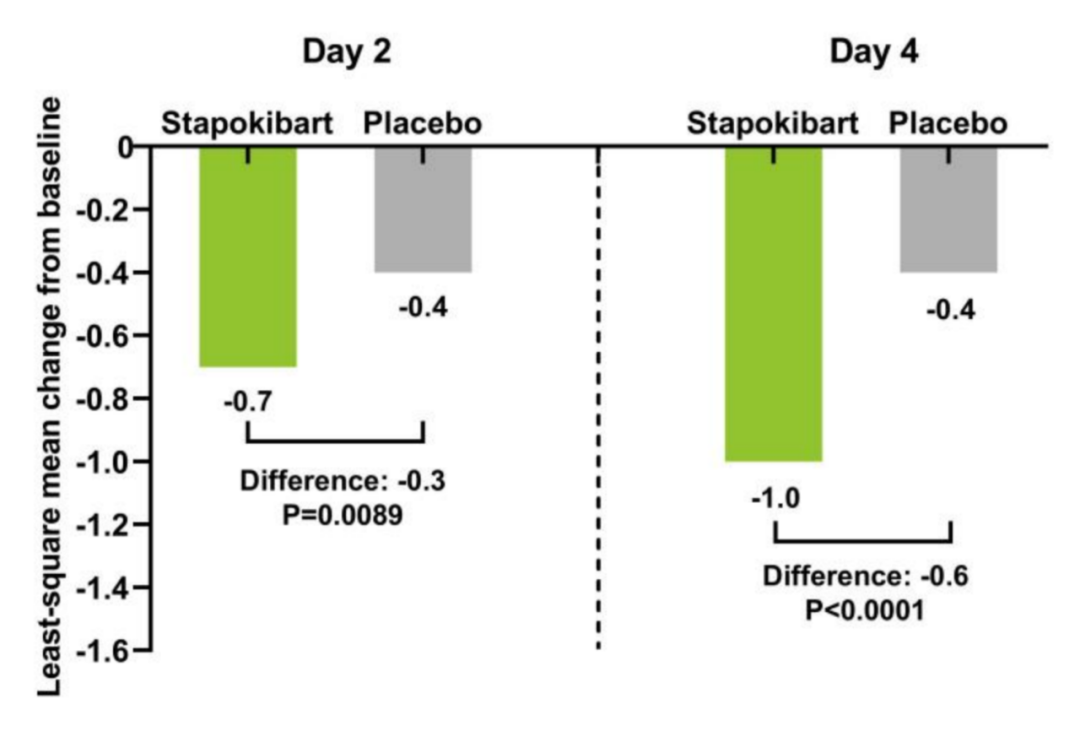 圖1. 每日回顧性鼻塞評分相較基線的最小二乘均值變化